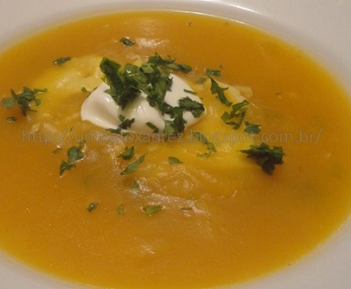 abóbora (já fiz com casca e fica muito boa também, só que não tão “lisinha”),